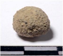 | Description / विवरण | A stone sling ball, round in shape of rough surface. |