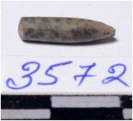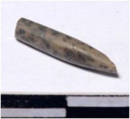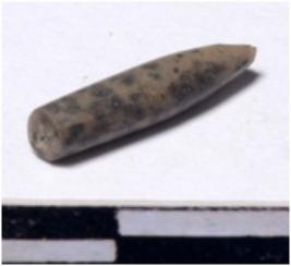 | Description / विवरण | A fragment of a stone drill bit circular in section pointed on one end of smooth surface. |