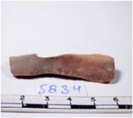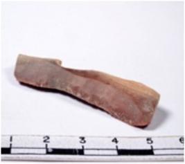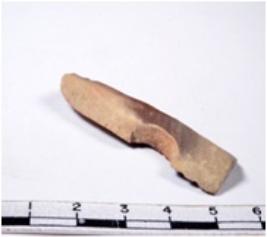 | Description / विवरण | A fragment of a rectangular shaped chert blade showing dorsal sides with broken edges having smooth surface and triangular section. |