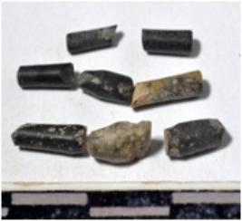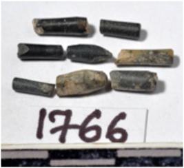 | Description / विवरण | Fragments of stone drill bits, circular in section, broken from both ends of smooth surface. |