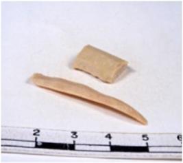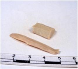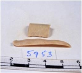 | Description / विवरण | A fragment of a rectangular shaped chert blade showing dorsal sides with sharp edges having smooth surface and uneven section. |
