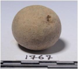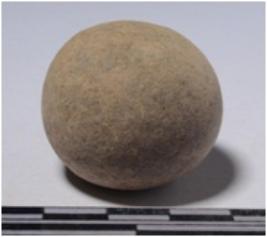 | Description / विवरण | A stone sling ball, round in shape of smooth surface. |