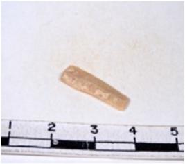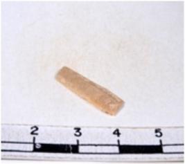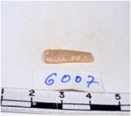 | Description / विवरण | A fragment of a rectangular shaped chert blade showing dorsal sides with sharp edges having smooth surface and triangular section. |