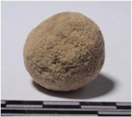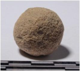 | Description / विवरण | A stone sling ball round in shape of rough surface. |