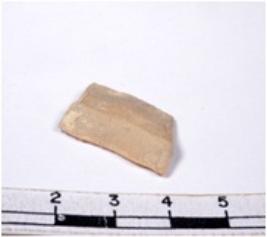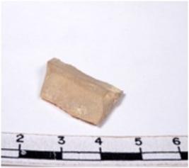 | Description / विवरण | A fragment of a rectangular shaped chert blade showing dorsal sides with sharp edges having smooth surface and triangular section. |