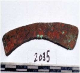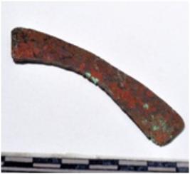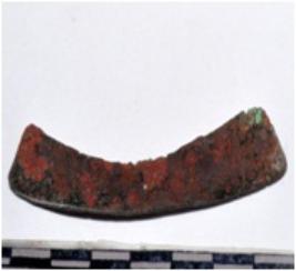 | Description / विवरण | A fragment of a copper chisel slightly curved shaped sharpen one edges of smooth surface. |