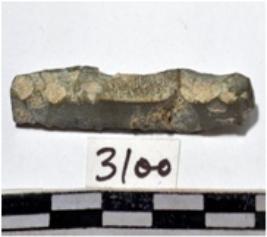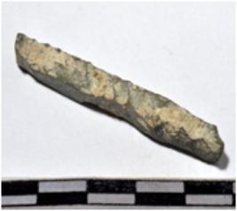 | Description / विवरण | A fragment of a stone drill bit uneven in section of rough surface. |
