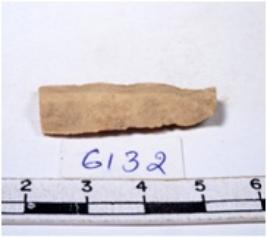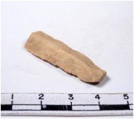 | Description / विवरण | A fragment of a rectangular shaped chert blade showing dorsal sides with sharp edges having smooth surface and triangular section. |