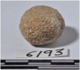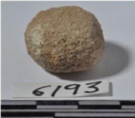 | Description / विवरण | A stone sling ball, round in shape of rough surface. |