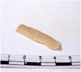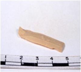 | Description / विवरण | A fragment of a rectangular shaped chert blade showing dorsal sides with sharp edges having smooth surface and triangular section. |