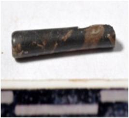 | Description / विवरण | A fragment of a stone drill bit, circular in section, broken from both ends of smooth surface. |