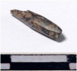| Description / विवरण | A fragment of a stone drill bit circular in section broken from both end of smooth surface. |