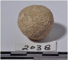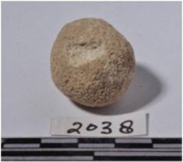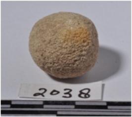 | Description / विवरण | A stone sling ball, round in shape of rough surface. |