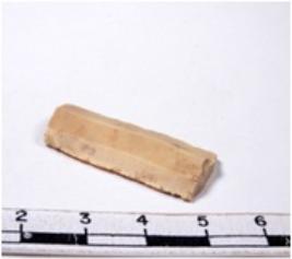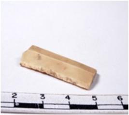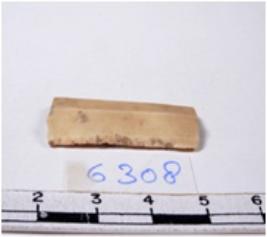 | Description / विवरण | A fragment of a rectangular shaped chert blade showing parallel sides with sharp edges having smooth surface and uneven section. |