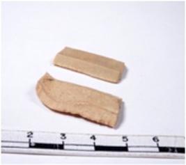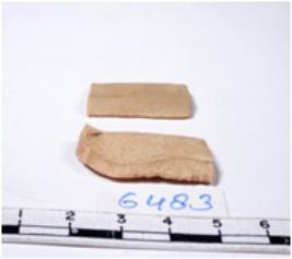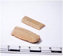 | Description / विवरण | A fragment of a rectangular shaped chert blade shaped chert blade showing dorsal sides with sharp edges having smooth surface and triangular section. |