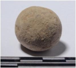 | Description / विवरण | A stone sling ball round in shape of rough surface. |