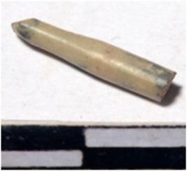 | Description / विवरण | A fragment of a stone drill bit, broken both end, circular in section of smooth surface. |