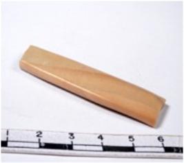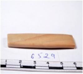 | Description / विवरण | A fragment of a rectangular shaped chert blade showing parallel sides with sharp edges having smooth surface and uneven section. |