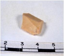 | Description / विवरण | A fragment of a rectangular shaped chert blade showing dorsal sides with sharp cutting edges having smooth surface and triangular section. |
