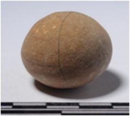 | Description / विवरण | A stone sling ball round in shape of smooth surface. |