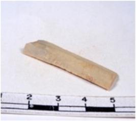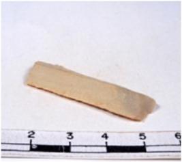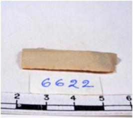 | Description / विवरण | A fragment of a rectangular shaped chert blade showing dorsal sides with sharp cutting edges having smooth surface and triangular section. |