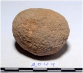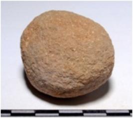 | Description / विवरण | A stone sling ball round in shape of rough surface. |