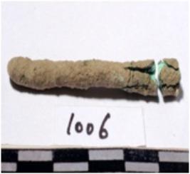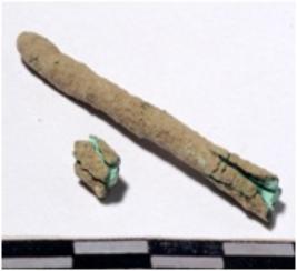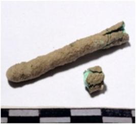 | Description / विवरण | A fragment of a copper nail circular in section broken from both end of rough surface. |