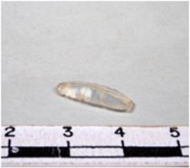 | Description / विवरण | A fragment of a rectangular shaped chalcedony blade showing dorsal sides with sharp edges having smooth surface and triangular section. |