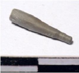 | Description / विवरण | A fragment of a stone drill bit circular in section pointed one end of smooth surface. |