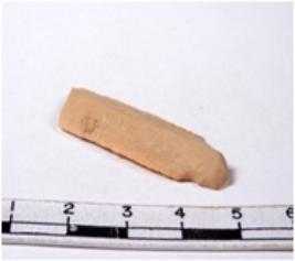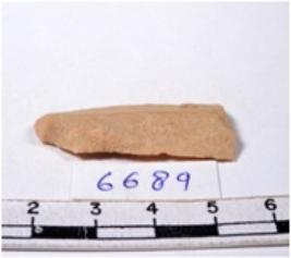 | Description / विवरण | A fragment of a rectangular shaped chert blade showing dorsal sides with sharp edges having smooth surface and triangular section. |