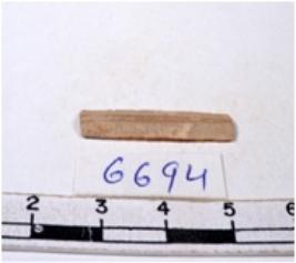| Description / विवरण | A fragment of a rectangular shaped chert blade showing dorsal sides with sharp edges having smooth surface and triangular section. |