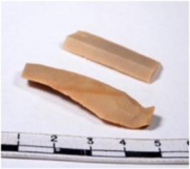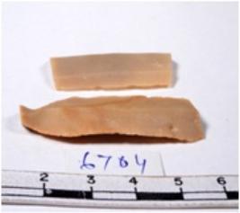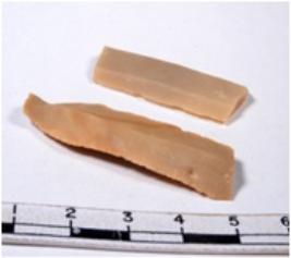 | Description / विवरण | A fragment of a rectangular shaped chert blade showing parallel sides with sharp edges having smooth surface and triangular section. |