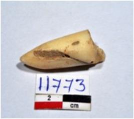 | Description / विवरण | A small sized point of shell showing conical in shaped, pointed on one end, having fine surface. |