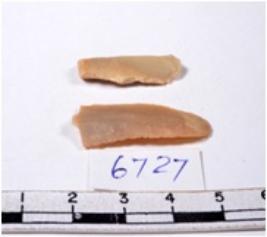 | Description / विवरण | A fragment of a rectangular shaped chert blade showing dorsal sides with sharp edges having smooth surface and uneven section. |