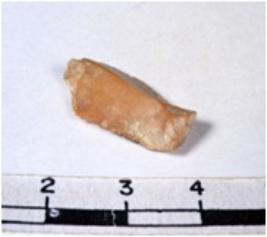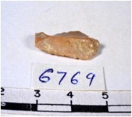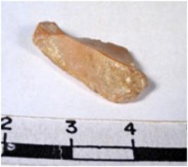 | Description / विवरण | A fragment of a rectangular shaped chert blade showing dorsal sides with sharp edges having smooth surface and triangular section. |