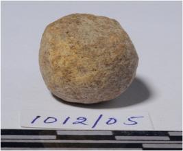 | Description / विवरण | A stone sling ball round in shape, of rough surface. |