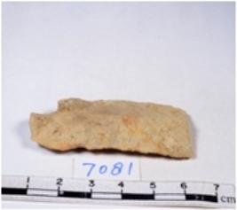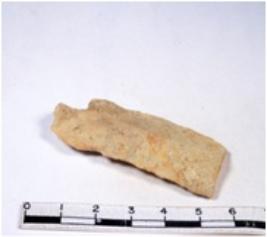 | Description / विवरण | A fragment of a rectangular shaped chert blade showing dorsal sides with sharp edges having smooth surface and triangular section. |