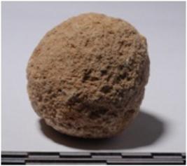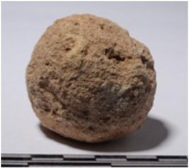 | Description / विवरण | A stone sling ball round in shape of rough surface. |