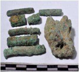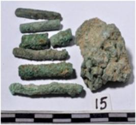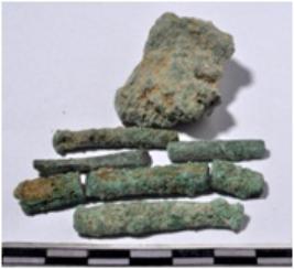 | Description / विवरण | Fragments of copper rods, circular in section of rough surface. |