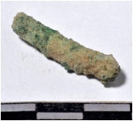 | Description / विवरण | A fragment of a copper rod, broken both end, circular in section of rough surface. |