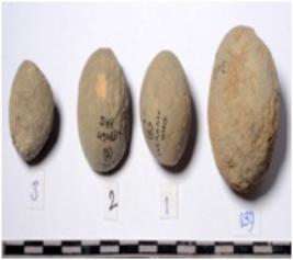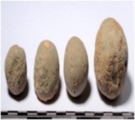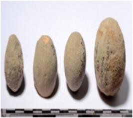 | Description / विवरण | A terracotta sling ball round in shape of rough surface. |