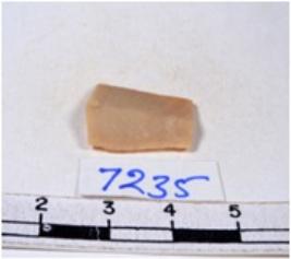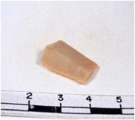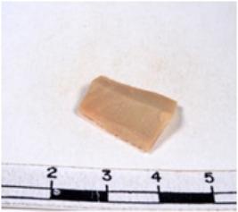 | Description / विवरण | A fragment of a rectangular shaped chert blade showing dorsal sides with sharp edges having smooth surface and triangular section. |