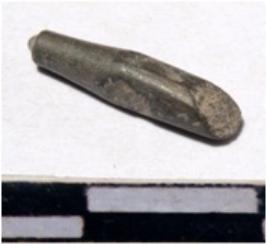 | Description / विवरण | A fragment of a stone drill bit circular in section of rough surface. |