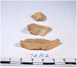 | Description / विवरण | A fragment of a rectangular shaped chert blade showing dorsal sides with sharp edges having smooth surface and triangular section. |