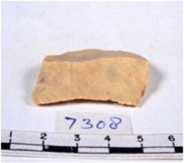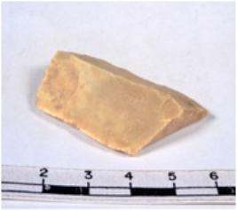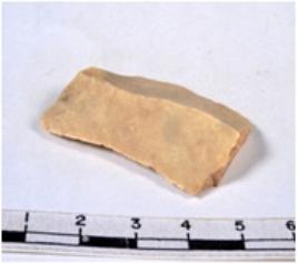 | Description / विवरण | A fragment of a rectangular shaped chert blade showing dorsal sides with sharp edges having smooth surface and triangular. |