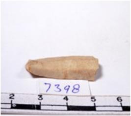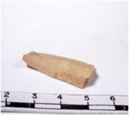 | Description / विवरण | A fragment of a rectangular shaped chert blade showing dorsal sides with sharp edges having smooth surface and triangular section. |
