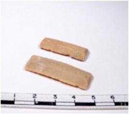 | Description / विवरण | A fragment of a rectangular shaped chert blade showing dorsal sides with sharp cutting edges having smooth surface and triangular section. |