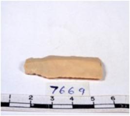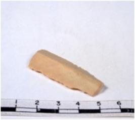 | Description / विवरण | A fragment of a rectangular shaped chert blade showing dorsal sides with sharp edges having smooth surface and triangular section. |