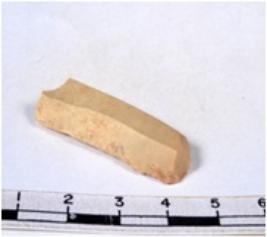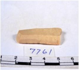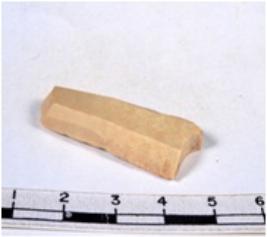 | Description / विवरण | A fragment of a rectangular shaped chert blade showing parallel sides with sharp edges having smooth surface and uneven section. |