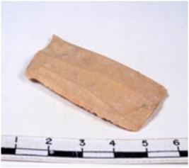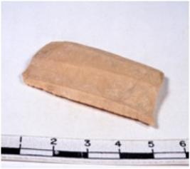 | Description / विवरण | A fragment of a rectangular shaped chert blade showing flat sides with sharp edges having smooth surface and uneven section. |